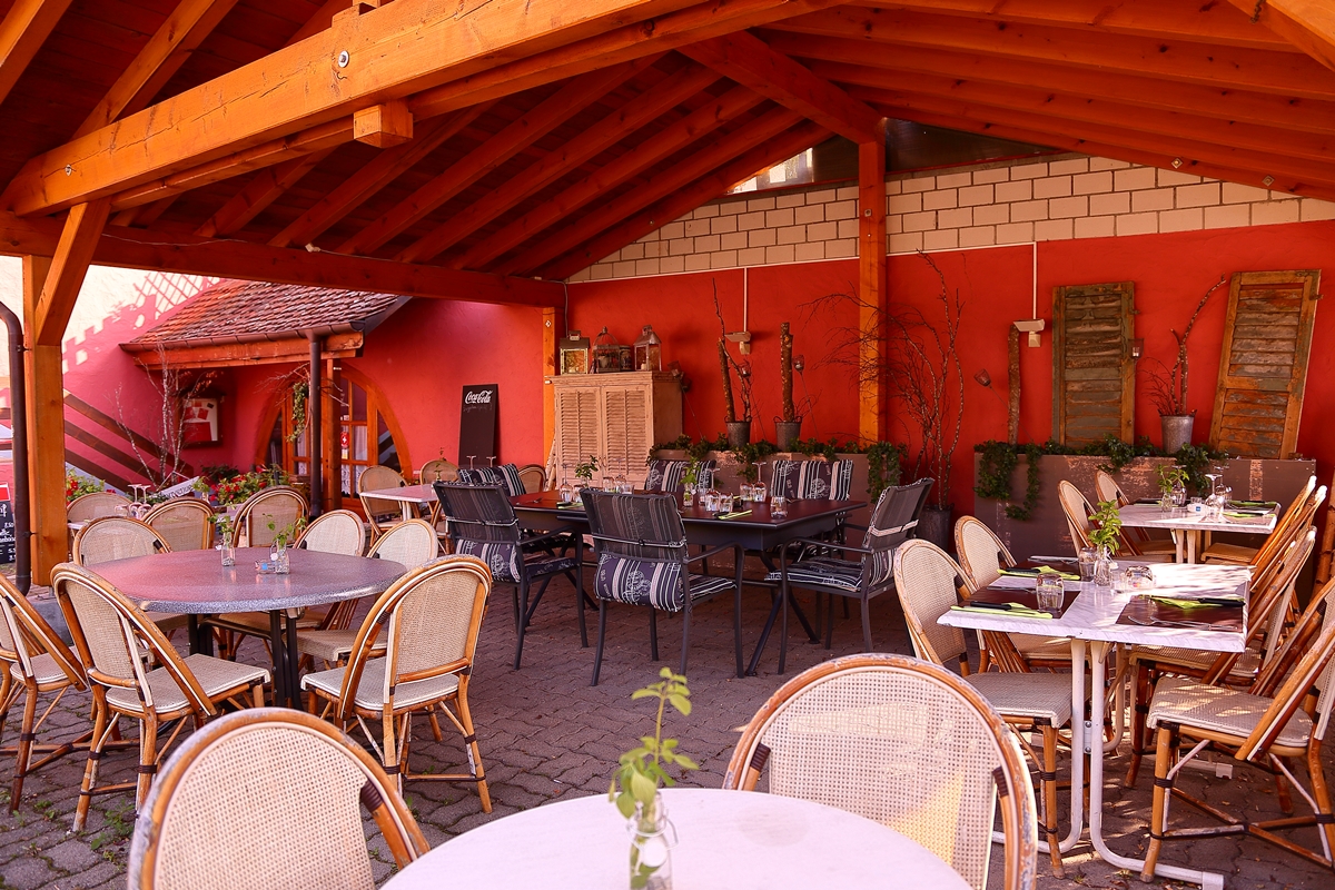 Pendant les beaux jours, une terrasse est également à disposition dans la cour arrière de l'établissement.